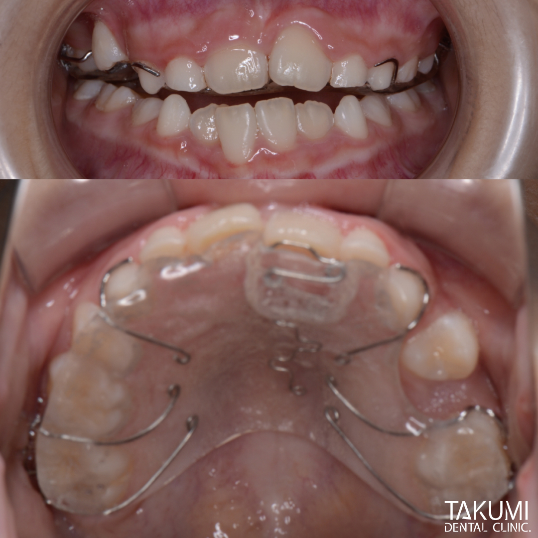 この時期は、歯が埋まっている顎の骨も柔らかく、歯が動きやすいので、早ければ1~2カ月、遅くても3~4カ月あれば、前歯のかみ合わせを受け口(反対咬合)から正常な状態に治すことができます。
